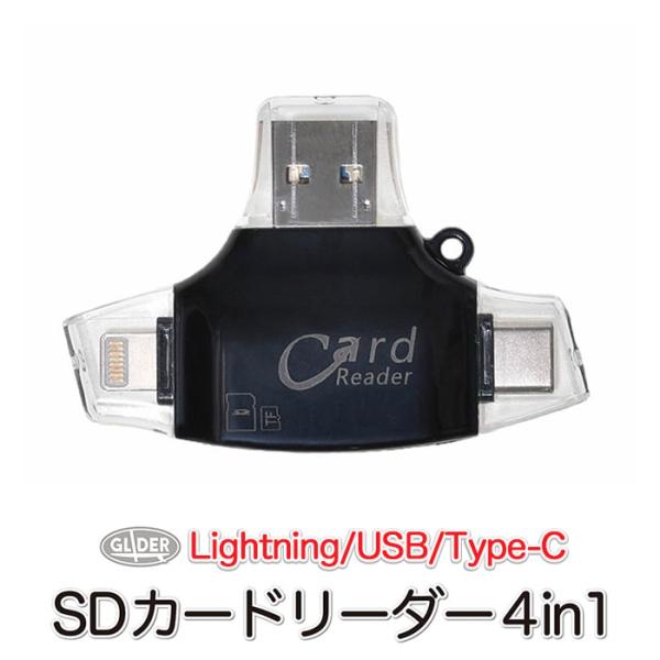 SDカードリーダー カードリーダー 4in1 Type-C USB 3.0 MicroUSB Lightning iPhone/iPad/Android