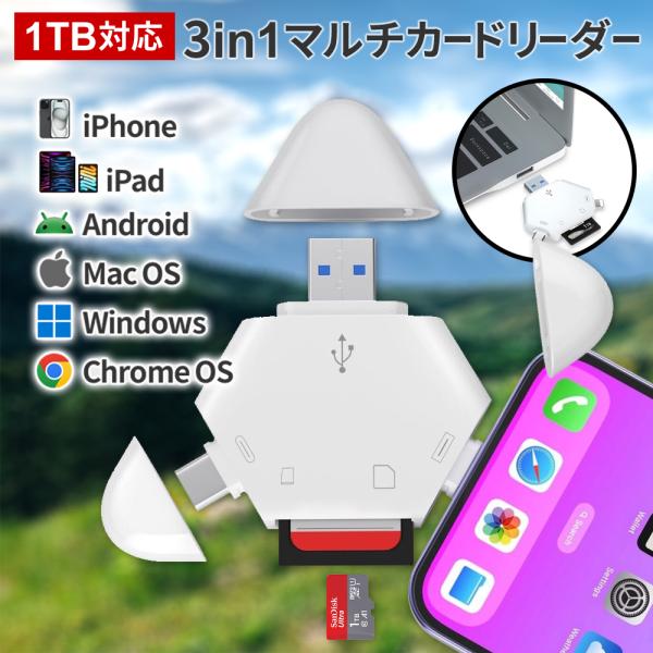 - iPhone 15対応 SD カードリーダー 1TB対応 バックアップ USBメモリ 写真 保存 データ スマホ マイクロSDカードリーダー SDカードカメラリーダー 1年保証