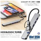 usbハブ USBハブ 8in1 USB-C 3.5mmオーディオ SD microSD カード USB-A USB2.0 USB3.0対応 タイプC 多機能 スマホ ノートPC パソコン カメラ 8IN1HUBSV