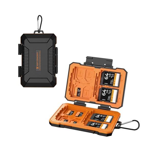 - 【29スロット・超お得な大容量メモリーカードケース】K&FConceptカードストレージケースは29スロットです。SDカード4枚、CFカード4枚、XQDカード12枚、MicroSD(TF)カードとNANOSIM2枚、マイクロSIM2枚、SIMカード1枚を収納できます。PINコードも含む。 【材質進級・防水・耐衝撃】IP55相当の防水・防塵機能を備え、水やホコリからSDカードとmicroSDカードを守るメモリカードケース、また衝撃吸収クッションを採用したABS製ケースなので、大事なメモリカードの損傷や衝撃からよりよく防げます。 【ぴったりサイズ】ゴム製のスロットはあなたのメモリーカードにぴったりフィットし、作りもしっかりしているので踏んでしまっても中のカードは大丈夫です。 【持ち運びに便利・カラビナも付き】旅行や大量撮影をするときにメディアを入れて携帯すれば心配なしです。 【質感よい・高級感あり・様々な用途】メモリーカードの保管やSDカードを整理することに便利です。