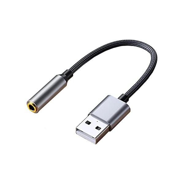 USB to 3.5mm オーディオ 変換アダプタ 外付サウンドカード USB ポート 4極(TRRS)3.5mm ミニ ジャック ヘッドホン・