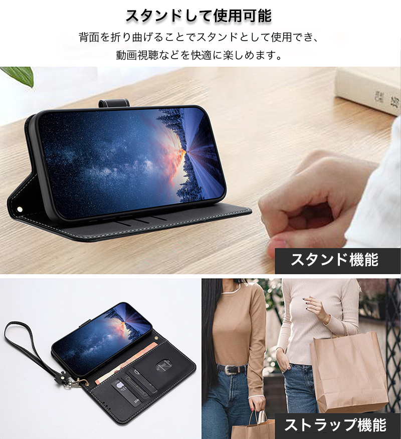 iPhone16 Pro Max ケース 手帳型 iPhone16 Plus ケース 耐衝撃 おしゃれ iPhone16e 本革調 レザー カバー ストラップ付 カード収納 アイフォン16 充電ケーブル付