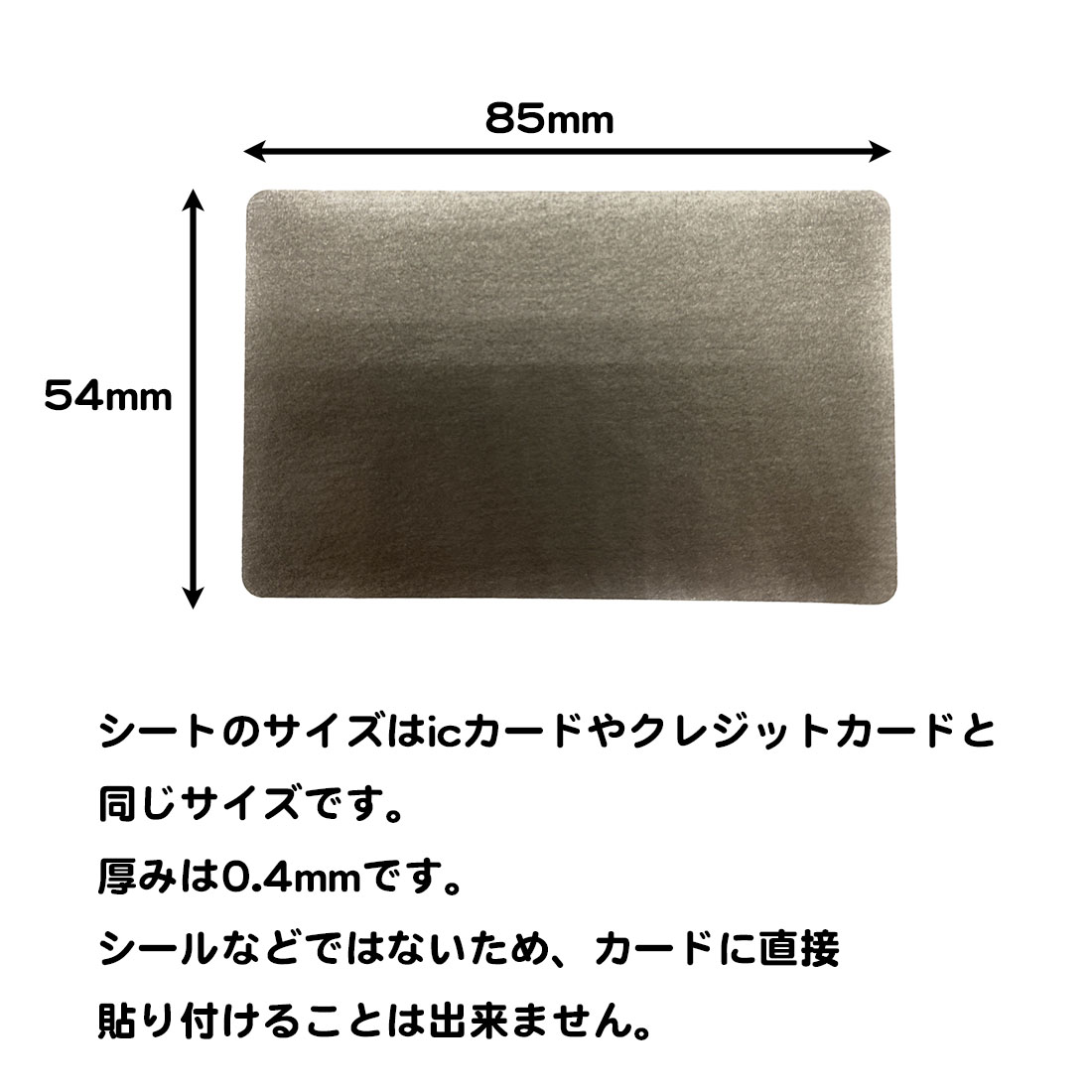 - ・交通系ICカードなど、スマホケースに入れて改札をタッチした際にエラーとなあるのを防止するシートです。 ・ICカードの磁気がスマホと干渉するのを防ぎ、ICカードが正常に動作するようになります。 ・シートはクレジットカードや交通系ICカードと同じサイズとなっており、重ねて収納してもピッタリです。 ・シートは1枚セットです。ホルダーやスマホケースは付属しません。 ・厚さ0.2mmでかさばらない極薄タイプです。 ・裏面はシールタイプとなっておりますが、強力なシールとなっております。一度貼ると剥がせない場合がありますのでシールを貼らずにお使い頂くことをおすすめします。" ICカードの磁気干渉を防ぐシートです。 "
