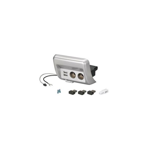 - カーメイト NZ589 エブリイ 専用 増設電源ユニット シルバー DA17 エブリイ アクセサリーソケット エブリイワゴン エブリイバン USB電源 ×2 シガーソケット ×2 carmate まるで純正品 エブリイ ( DA17 ) 専用設計 エブリイワゴン エブリイバン まるで純正品 本製品はエブリイ(DA17)の純正カードケース(灰皿)と差し替え、粘着テープを併用して取り付ける専用設計・専用デザインの商品です。ヒューズから電源を取り出すので、純正ソケットを使わずに新たにソケットが2ヶ、USBが2ヶ増設出来ます。 適合車種 本製品は下記の車種専用です。 ・スズキ エブリイワゴン、エブリイ 型式:DA17W/DA17V 年式:2015(平成27)年2月〜 ・日産 NV100クリッパーリオ、NV100クリッパー 型式:DR17W/DR17V 年式:2015(平成27)年2月〜2024(令和6)年3月 ・日産 クリッパーリオ、クリッパー 型式:DR17W/DR17V 年式:2024(令和6)年3月〜 ・ミツビシ タウンボックス、ミニキャブバン 型式:DS17W/DS17V 年式:2015(平成27)年3月〜 ・マツダ スクラムワゴン、スクラムバン 型式:DG17W/DG17V 年式:2015(平成27)年3月〜 ※調査日(2024年 3月)以降の仕様変更車には適合しない場合があります。 洗練された専用デザイン 専用設計/専用デザインなので、ボディ表面はエブリイの内装同等の処理を施したうえに塗装で質感を近づけ、まるで純正品かのような仕上がりでエブリイ等の内装への一体感を増すデザイン演出となっています。 取り付け目安(15分)ヒューズ電源取り出し(取付動画あり) 純正のカードケース(灰皿)を取り外した場所に本製品を差し込み、製品に備え付けてある粘着テープを併用して取り付けます。(粘着テープは、高温にも低温にもなる厳しい車内環境で高い粘着性能を発揮しつつ、取り外す際にはノリ残りや貼り付け跡が付きにくい、車内で使用するのに最適なテープを選定しています。) 電源は、グローブボックスを開けてヒューズボックスから取り出します。マイナスアースを取るために工具(10mmのレンチ)が必要になります。 USB電源のフットライト付き 本製品には、3色(ブルー/ホワイト/オレンジ)のLEDフットライトを付属しています。純正のエアコンパネルの色に合わせたオレンジLED、こだわりの空間演出にはブルーLED、シンプルに足元を明るくするにはホワイトLED。好きなLED色のフットライトを取り付けて楽しめます。 カードケース(灰皿)→2連ソケット+2USBポート 純正のカードケース(灰皿)に本製品を取り付けることで、ソケット2口とUSBポート2口を新たに増設することができます。2連ソケット+2口USBになることで、スマートフォンや加熱式たばこ等の電子機器の充電やドライブレコーダーへの給電など様々なシーンで役立ちます。(最下段のUSBポートはフットランプ用なので、充電用にお使いいただけるUSBポートは2つとなります。) 合計出力7A(84W)の大容量 ソケット部・USBポート部合計で7Aの電装品を使うことが可能です。 スマートフォンやタブレット端末、加熱式タバコの充電、FMトランスミッター、ドライブレコーダーへの給電 等、合計7A(84w)までの電装機器を使うことができます。 オートチャージIC内蔵 最大定格3A出力のUSBポート USB合計出力が最大定格で3Aなので、様々な電装機器を快適に充電することができます。また、オートチャージICを内蔵しているため、接続した機器に最適な電流を自動で判断し充電することができます。最大定格3Aの電力を出力できる設計なので、接続した機器の要求する電力に余裕をもって供給することができます。 最大アンペアと最大定格アンペアの違い 最大3A:1秒でも3Aが出れば最大3A 最大定格3A:接続した機器が要求すれば、いつでも3A出せるのが最大定格3A 本製品は最大定格3Aなので、機器の要求に合わせていつでも最大3Aの出力が可能です。 オリジナルヒューズによる安全機能搭載 当社オリジナルの電源取り出し用ヒューズを入れることで万一許容電流を超えて出力をしてしまった場合でも、車両側に影響を与えない製品側のヒューズが切れる仕組みになっています。これは、車体側のヒューズ・お使いの電装機器を守るためのものです。 ヒューズが切れてしまった場合は、電装機器のアンペアが許容アンペアを超えている、または接続した電装機器が故障しているなどの原因が考えられます。 また、交換用の電源取り出しヒューズはCZ485をお求めください。 交換用ヒューズ(別売り) [低背ヒューズ] こちら CZ485 ヒューズ電源 増設ソケット用 低背ヒューズ 2個入り 仕様 ・電源電圧 :DC12V ・出力容量 :DC12V-ソケット 2口合計 最大7A(84W) DC5V-USB 2口合計 最大3A(15W) 本製品全体で合計7A(84W) 本製品と車両のアクセサリーソケット全体で 最大10A(120W) ・定格消費電流:フットライト 0.02A(0.24W) ・使用温度範囲:0℃〜+45℃ ・ヒューズ :当社指定品(品番:CZ485)と交換可能 製品構成 ・電源増設ユニット×1(電源線/ボディアース線付き) ・電源取り出しヒューズ×1 ・ヒューズ抜き×1 ・フットライト×3(ブルー/ホワイト/オレンジの各1個) お求めいただく前に ・本製品は以下の車種専用です