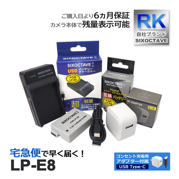【互換品】 LP-E8 CANON キヤノン 互換 バッテリー 1個と 互換 USB充電器 【コンセント充電用 ACアダプター付き】 3点セット 純正品対応 (a2.1)