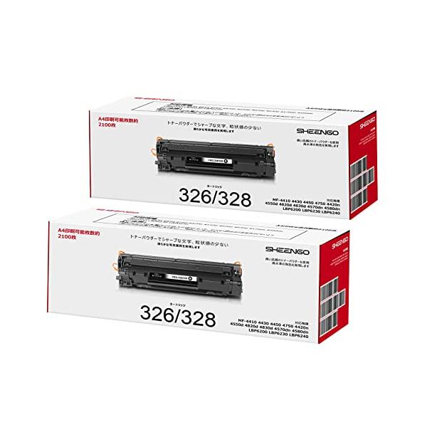 - 【セット内容】CRG-326/328 黒2本セット 互換トナーカートリッジ【対応型番】LBP6200 LBP6240 LBP6230 MF4580dn MF4570dn MF4550d MF4450 MF4430 MF4420n MF4410 MF4750 MF4820d MF4830d MF4890dw MF4870dn【増量タイプ】 印刷枚数は約2100枚【個別包装】SHEENGOの製品は個別包装ので長期保存が可能です。インク漏れ、商品の破損、ICチップにこすることなど不具合の問題も有効に避けます。【ご注意】商品パッケージは生産ロッドや仕入れ状況によって、予告なく変更される場合がございます(商品内容は同等の物となります)。予めご了承ください。