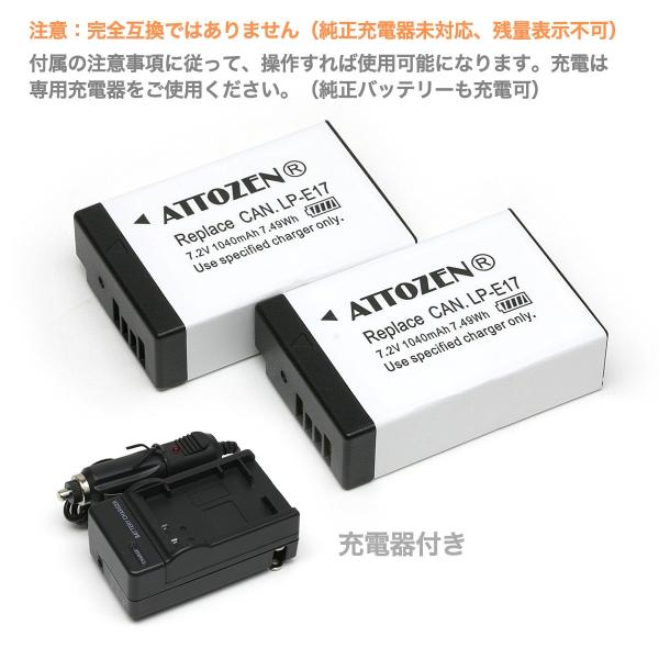 キヤノン LP-E17 互換バッテリー 2個セット 充電器付き(注:純正充電器未対応、残量表示不可)