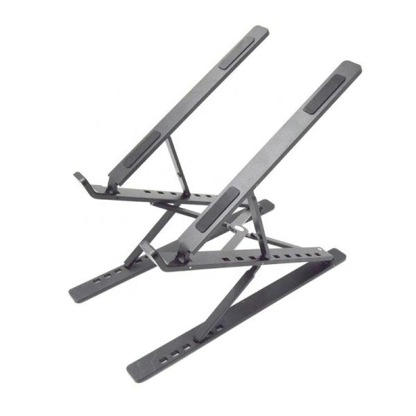 ●King KLS-W02は、軽量・コンパクトに収納可能な折りたたみ式ラップトップスタンドです。角度を6段階、高さを9段階調整可能な人間工学設計となっており、姿勢を改善し、腰痛や猫背の解消が期待できます。素材に放熱性能が高いアルミ合金を使用しており、接触面積を抑えたX型デザインとの相乗効果により放熱効率を高めます。