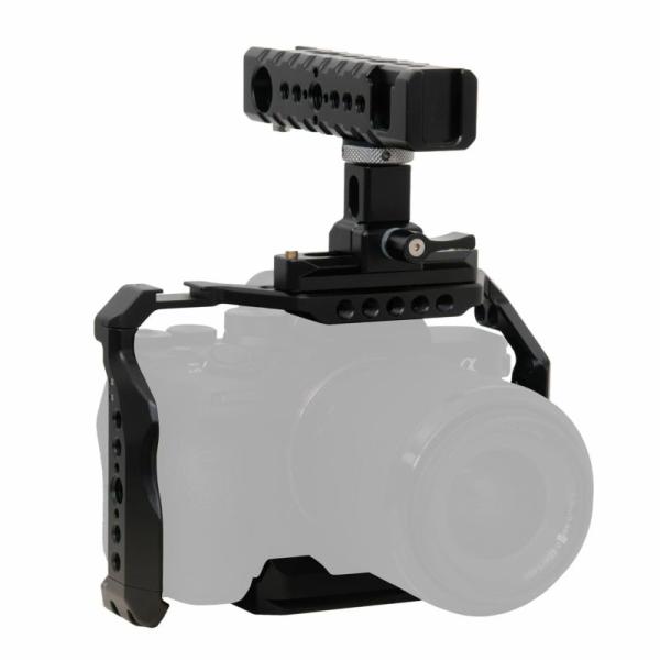 - 機材の耐久性・拡張性を大幅に高めるカメラケージ K-KC-A74は、本格的な動画撮影に最適な対応機種専用設計の撮影用ケージです。装着することでカメラ本体の耐久性と拡張性を大幅に高めることができます。 【主な特長】 ・カメラの保護に 大切なカメラを擦り傷などから保護します。 ・カメラの拡張性を高めます モニターやマイク、ライトなどの様々なアクセサリーが装着可能です。 ・機種専用設計 機種専用設計で、バッテリーの脱着等、基本機能を損ないません。 ※付属パーツを付け替えることでα7IV,α7III,α7II,に適合します ・多様なマウント 1/4、3/8インチネジ、ARRIアクセサリーマウント、アクセサリーシュー、 NATOレール等、多くのマウントを装備しています。 ・アルカスイス互換 ベース部がクイックプレートになっており、アルカスイス互換の三脚に直接取り付け可能です。 ・ハンドル位置調整可能 付属のNATOレールトップハンドルは、使いやすい位置に前後左右の調整が可能です。 ・六角レンチ内蔵トップハンドル 付属のトップハンドルには2サイズの六角レンチを内蔵しています。 【製品仕様】 製品サイズ ケージW147×H107×D51mm (トップハンドル装着時高さ179mm) NATOレール69×21mm(移動可能幅55mm) トップハンドル66×118mm 重量 373g 材質 アルミニウム(ネジ:ステンレス) パッケージサイズ W120×H205×D65mm