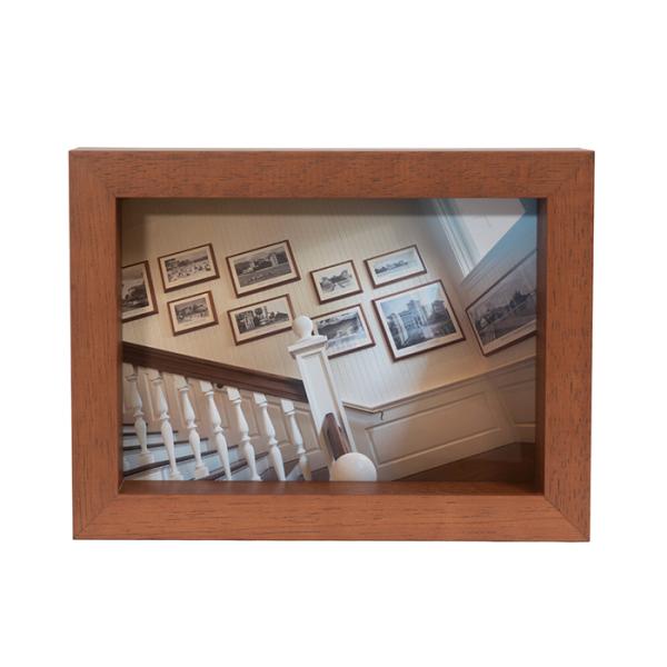 - 写真を立体的に演出する木製ボックスフレーム King BOXフレーム は、ボックスタイプの外枠を採用したフォトフレームです。フレームに奥行きがあることで写真に立体感を与え、視覚的に引き立てることができます。前面のアクリル板はUVカット加工が施されており、大切な作品を色褪せから守ります。また、奥行きを活かしてレリーフ(半立体)作品や小物類の展示など、様々な用途にもお使いいただけます 【 主な特長 】 ・全2色の木製ボックスフレーム ・奥行きのあるフレームで写真に立体感が出ます ・立体物も飾れます ・前面板アクリル(UVカット) ・吊金具付き 【 製品仕様 】 フレーム外寸:W202×H152×D35mm フレーム内寸:W166×H116×D23mm 最大収納サイズ:W180×H130mm 重量:280g パッケージサイズ:165×225×50mm、370g 商品管理番号 4906238828262 日本郵便レターパックプラスで発送いたします