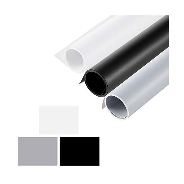 Meking 撮影用 PVC 背景布 100cm x200cm バックペーパー 商品撮影 写真撮影 人物写真 ホワイト+ブラック+グレー 3点セ