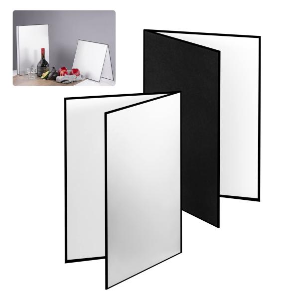 実用性:シルバー色は強いライトを反射し、光量不足を補強できます。ブラック色は余計な光を吸収して、対象物(ガラス、金属製品など)の輪郭を強調できます。ホワイト色はレフ板として使用することができます、商品の白い輪郭を強調することができます。