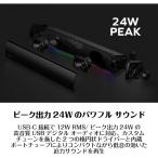 - 製品の仕様 スピーカー構成:一体型ステレオ スピーカー 外形寸法 / 重量:約W410 x H73.7 x D92.7 mm / 約1kg スピーカー出力:6W x2 RMS(ピーク出力24W) 周波数特性:100Hz~20kHz 再生モード:USBオーディオ / Bluetooth / AUX 入出力端子:USBオーディオ(USB Type-C)※1、AUX入力(ステレオ3.5mm) Bluetooth※2 バージョン:Bluetooth 5.4 プロファイル:A2DP(ワイヤレスステレオBluetooth) コーデック:SBC 通信距離:約10m(見通し距離) 電源:USB-C 5V/3A コントローラ/インジケータ類 RGB ライティング、LEDインジケータ(ソース)、電源ボタン/ボリューム調節ノブ、マルチファンクション ボタン(ソース切替/Bluetooth ペアリング)、SuperWide ボタン、RGB ライティング ボタン ※1:USBオーディオは、UACに対応する各プラットフォームで提供されるUACドライバーで動作可能ですが、すべてのプラットフォーム上で動作を保証するものではありません。 ※2:Bluetooth オーディオは、A2DPに対応するBluetooth デバイスからのオーディオ再生に対応していますが、すべてのBluetooth デバイス/アプリでの動作を保証するものではありません。SCMS-Tには対応していません。HFPによる音声通話や通話操作には対応していません。 必要なシステム USB接続/Windows PC/Mac 標準USBオーディオ ドライバーをサポートするWindows PCやMacなど 5V/3Aの電源が供給可能なUSB-C バスパワー Bluetooth接続 Bluetooth 5.4互換でA2DP(音楽再生)プロファイルに対応するBluetooth デバイス 5V/3AのUSB-C電源供給 アナログ接続 3.5mmステレオ出力を備えたゲーム機やPCモニター、テレビなど 5V/3AのUSB-C電源供給 その他 インターネット接続(ソフトウェア/アプリのダウンロードやSuper X-Fiプロファイルの作成/転送、ユーザー登録、サポートを受ける際に必要) * 動作条件を満たしている場合でも、すべて機器での動作や機能を保証するものではありません。各スタマーサービス/テクニカルサポートを受けるにはインターネットより弊社ホームページにアクセスする必要があります。 製品の内容 サウンドバー本体 USB-C ケーブル(約1.5m) クイック スタート ガイド/ハードウェア保証書 *USB-C電源アダプターや3極タイプのステレオ ライン ケーブルは付属しません。 製品保証 1年間の製品保証概要 Sound Blaster GS3は、USB-C電源によるパワフル サウンドとSuperWide™技術によるワイドなサウンド ステージによって、臨場感あふれるゲーミング サウンドをお届けするRGB ライティング搭載のコンパクトなゲーミング サウンドバーです。 USB-C接続※1によって12W RMS/ピーク出力24W※2の高音質USBデジタル オーディオの再生が可能で、カスタム チューンを施した2つの楕円状ドライバーと内蔵ポートチューブにより、幅41cmとコンパクトなサイズながら低音の効いた迫力サウンドを再生します。 Bluetooth® ワイヤレス接続※3※4やアナログ接続※3※5にも対応しており、スマホゲームのワイヤレス オーディオや、携帯ゲーム機やテレビなどのアナログ出力のオーディオも簡単に再生できます。 各オーディオ ソースには、Sound Blasterで培ったSuperWide オーディオ エンハンスメント※6が適用可能で、サイズを超えたワイドなサウンド ステージでゲームや映像コンテンツをお楽しみ頂けます。 また、ゲーミング モニターやテレビの下にフィットするようデザインされたスリムなボディの下側には、ライティング パターンの選択や輝度調節が可能なRGB ライティングを備えており、ゲーミング シーンをイルミネーションで彩ります。 SuperWideによるワイドで臨場感あふれるパワフル サウンドとRGB ライティングで、ゲームやムービーなど様々なエンターテイメントをお楽しみ下さい! ※1:UACに対応する各プラットフォームで提供されるUACドライバーで動作可能ですが、すべてのプラットフォーム上で動作を保証するものではありません。 ※2:5V/3Aの電源が供給可能なPCなどのUSB-C ポートやUSB-C電源アダプター、Creative GaN ChargerなどのUSB PD電源アダプターからスピーカーに給電した場合の最大出力です。すべてのUSB-C ポートや電源アダプターでの動作を保証するものではありません。 ※3:USB-CまたはUSB PDでの電源供給が必要になります。 ※4:A2DPに対応するBluetooth デバイスからのオーディオ再生に対応していますが、すべてのBluetooth デバイスやアプリでの動作を保証するものではありません。 ※5:別途3極タイプのステレオ ライン ケーブルが必要です。 ※6:SuperWide オーディオ エンハンスメントはヘッドホン出力には適用されません。