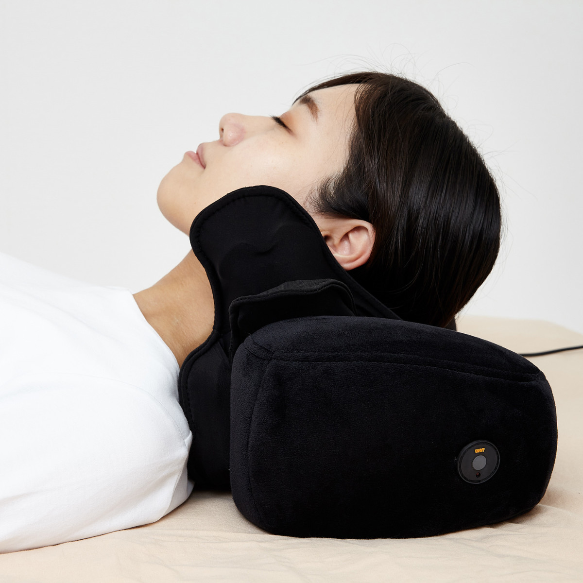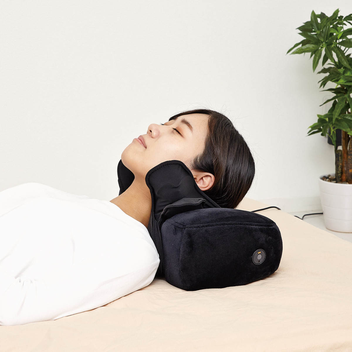 ●首と肩を電動で伸ばし、しっかりストレッチできます。