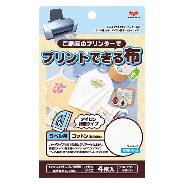 印刷紙 『プリントできる布 アイロン接着タイプ ラベル用 コットン ハガキサイズ 4枚入 11-296』 KAWAGUCHI カワグチ 河口