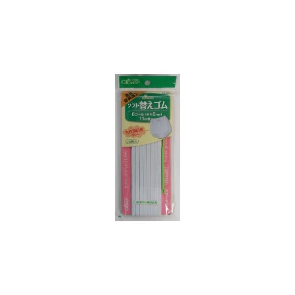 【メール便選択可】クロバー ソフト替えゴム 抗菌防臭加工 白 6コール 約5mm幅 11m 26-053