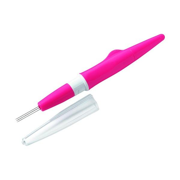 - ■特徴 小さなモチーフや細かいラインも思いどおりにできます。 フェルトパンチャーは使いやすさや安全性にこだわった、羊毛フェルト手芸の専用ツールです。 作品がスピーディに仕上がる3本針タイプです。 ペン型グリップで手が疲れにくく、針を3本まで付けられるので広い面でも早く仕上がります。針の本数調整・交換も簡単です。 ■仕様 3本針 ■材質 針:鋼/金属板:ステンレス 【重量】 33g 【入数】 1点 58602