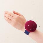 手首や腕などへの付けはずしがとてもスピーディにできる、バネ式のリストバンドピンクッションです。