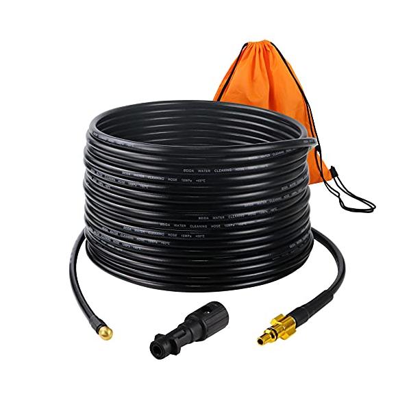 ・優れた性能高圧洗浄機用のパイプクリーナーホーススは、高品質のPVC樹脂ポリエチレンを使用しており、高い衝撃強度とねじれを防ぐ強い靭性を持っています。 硬くても柔軟性があるので、L字型のパイプ部分もクリアできますし、L字型の部分が複数あっても、簡単にアクセスでき、詰まった汚れ部分を取り除くことができます