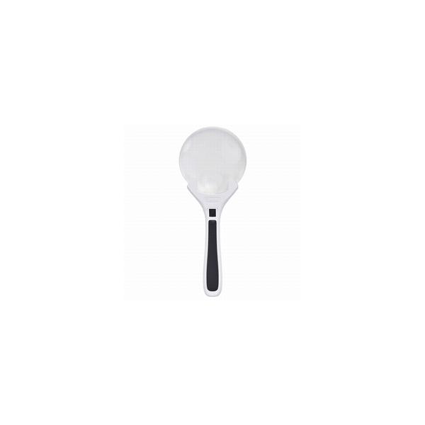 - [主な特徴] 90mmの大きなレンズで見易さ抜群。LEDライトで手元を明るく照らします 新聞、雑誌、地図などを長時間見るときにも目が疲れにくい倍率2倍。より小さな文字も見やすい3.5倍の小玉レンズも付いて、さらに拡大して見たいときに便利です。 白と黒のツートンカラーとフチなしレンズでスタイリッシュなデザインも魅力。 持ち手の黒ライン部は、滑りにくい素材を使用し、持ちやすくなるよう工夫をしています。 [Kenko Tokina 拡大鏡 手持ちルーペ ハンドルーペ 携帯ルーペ 読書ルーペ 見やすい 新聞 2倍 3.5倍] [主な仕様] 倍率:2倍/小玉3.5倍 レンズ材質:アクリル樹脂 レンズ径:Ф90mm ライト:LEDライト2灯 電源:単4形乾電池2本(別売) 本体サイズ:W90×H224.5×D20.5mm 本体重量:約74g(電池含まず)