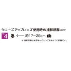 - 撮影レンズの前に装着するだけで手軽に接写できるクローズアップレンズ お求めやすい価格で手軽に接写ができる「MCクローズアップレンズ」をリニューアル。従来のラインナップはNo.1、No.2、No.3の3種類でしたが、より近接撮影が可能なNo.4を追加しました。 クローズアップレンズは、お持ちのレンズの前面に装着するだけで手軽に使える接写撮影アイテムです。 お持ちのレンズの最短撮影距離(被写体にピントが合う一番短い距離)よりも、さらに被写体に接近して、大きく撮ることができます。 クローズアップレンズを使用すれば、花の一部分を画面いっぱいに写したり、肉眼で見えないディテールを写したりといった新たな撮影表現が可能。花や小物の接写に最適です。 フィルター径:49mm〜82mm ※このページの商品は、「MCクローズアップ NEO No.4 82mm」です。 マスターレンズの最短撮影距離よりも、さらに被写体に接近し、大きく写すことができます。 ・マクロレンズと比べ、クローズアップレンズはお手頃価格で接写が楽しめます。 ・ポケットに入るほどコンパクトなので気軽に持ち歩けます。 ・一般のマクロレンズは単焦点ですが、クローズアップレンズをズームレンズに取り付ければ、接写でズームできます。 ・露出倍数がかからず、シャッタースピードが遅くなりません。 ・レンズ両面にマルチコートを施し反射を抑えています。 ・2枚を組み合わせて使用することもできます。 例) No.1+No.3=No.4相当。No.2+No.3=No.5相当 ・PLフィルター等の特殊効果フィルターを重ね付けすることもできます。 ※フィルターを重ね付けすると枠が厚くなるため、画面の四隅に暗い影が出てしまう場合があるのでご注意ください。 〜クローズアップレンズの選び方〜 No.1〜No.4をラインナップし、No.数値が大きいほど、 被写体に近づいて大きく写すことができます。 クローズアップレンズ使用時の撮影距離は、 No.1が約33〜100cm、No.2が約25〜50cm、 No.3が約20〜33cm、No.4が約17〜25cmです。 ※撮影距離は被写体からレンズ先端までの距離です。数値は目安です。 実際には使用するレンズによって差があります。また、遠くにはピントが合いません。 【No.1〜No.4比較例】 MCクローズアップNEO No.4 サイズ一覧 49mm 52mm 55mm 58mm 62mm 67mm 72mm 77mm 82mm ※画像はすべてイメージです。 この商品は、送料を頂きませんが、ネコポス便での発送となります。 当店では、通常3500円(税抜)以上のご注文で送料無料となりますが、ネコポス便送料無料の品以外を同時にお買上げで合計金額が3500円(税抜)以下の場合は、別途送料を頂きます。ご了承ください。