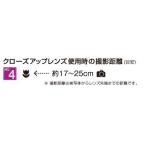 - 撮影レンズの前に装着するだけで手軽に接写できるクローズアップレンズ お求めやすい価格で手軽に接写ができる「MCクローズアップレンズ」をリニューアル。従来のラインナップはNo.1、No.2、No.3の3種類でしたが、より近接撮影が可能なNo.4を追加しました。 クローズアップレンズは、お持ちのレンズの前面に装着するだけで手軽に使える接写撮影アイテムです。 お持ちのレンズの最短撮影距離(被写体にピントが合う一番短い距離)よりも、さらに被写体に接近して、大きく撮ることができます。 クローズアップレンズを使用すれば、花の一部分を画面いっぱいに写したり、肉眼で見えないディテールを写したりといった新たな撮影表現が可能。花や小物の接写に最適です。 フィルター径:49mm〜82mm ※このページの商品は、「MCクローズアップ NEO No.4 77mm」です。 マスターレンズの最短撮影距離よりも、さらに被写体に接近し、大きく写すことができます。 ・マクロレンズと比べ、クローズアップレンズはお手頃価格で接写が楽しめます。 ・ポケットに入るほどコンパクトなので気軽に持ち歩けます。 ・一般のマクロレンズは単焦点ですが、クローズアップレンズをズームレンズに取り付ければ、接写でズームできます。 ・露出倍数がかからず、シャッタースピードが遅くなりません。 ・レンズ両面にマルチコートを施し反射を抑えています。 ・2枚を組み合わせて使用することもできます。 例) No.1+No.3=No.4相当。No.2+No.3=No.5相当 ・PLフィルター等の特殊効果フィルターを重ね付けすることもできます。 ※フィルターを重ね付けすると枠が厚くなるため、画面の四隅に暗い影が出てしまう場合があるのでご注意ください。 〜クローズアップレンズの選び方〜 No.1〜No.4をラインナップし、No.数値が大きいほど、 被写体に近づいて大きく写すことができます。 クローズアップレンズ使用時の撮影距離は、 No.1が約33〜100cm、No.2が約25〜50cm、 No.3が約20〜33cm、No.4が約17〜25cmです。 ※撮影距離は被写体からレンズ先端までの距離です。数値は目安です。 実際には使用するレンズによって差があります。また、遠くにはピントが合いません。 【No.1〜No.4比較例】 MCクローズアップNEO No.4 サイズ一覧 49mm 52mm 55mm 58mm 62mm 67mm 72mm 77mm 82mm ※画像はすべてイメージです。 この商品は、送料を頂きませんが、ネコポス便での発送となります。 当店では、通常3500円(税抜)以上のご注文で送料無料となりますが、ネコポス便送料無料の品以外を同時にお買上げで合計金額が3500円(税抜)以下の場合は、別途送料を頂きます。ご了承ください。