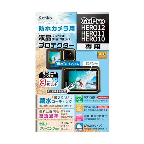 Kenko 液晶保護フィルム 液晶プロテクター GoPro HERO12/HERO11/HERO10 用 専用サイズ設計 防汚コート 日本製 K