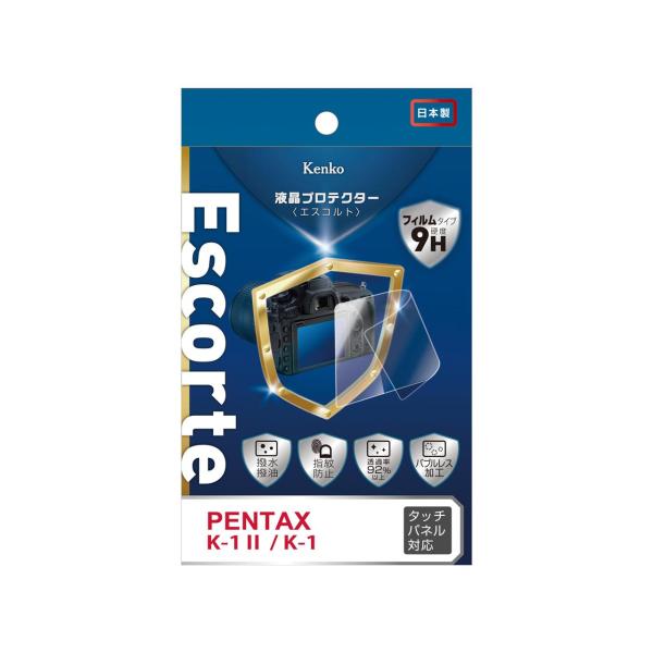 - [主な特徴] ●液晶プロテクターEscorte(エスコルト)は、史上最高硬度により、従来の機能を保ちながらこれまでになり保護力を実現しました。 ●フィルムタイプで表面硬度9Hを実現!擦り傷などの細かい傷がつきづらいので視認性の低下を防ぎます。 ●撥水・撥油コーティングで指紋などの汚れをさっと簡単にふき取ることが可能です。 ●全光線透過率92.0%を実現した高光沢フィルムが優れた透明感を発揮します。 ●気泡が残らない、バブルレス加工済み。 ●両端に持ち手があるので、シート本体を汚すことなく簡単、きれいに貼りつけることができます。 [Kenko Tokina KLPEPEK1M2 ペンタックス RICOH リコー K1MarkII K1 液晶プロテクター 液晶ガードフィルム 保護フィルム 液晶保護フィルム 日本製] [主な仕様] フィルムタイプ:撥水・撥油コーティング+ハードコート9Hタイプ 表面加工:グレア加工(光沢仕上げ) 厚さ:125ミクロン 粘着:気泡消滅タイプ(シリコン) ※表示パネル用フィルムは付属いたしません [対応機種] ペンタックス(RICOH IMAGING) PENTAX K-1MarkII PENTAX K-1
