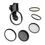 - ”撮る”から”創る”へ。 始めよう、クリエイティブな映像制作 「エグザプロ」スマートフォン用フィルタークリップ ケンコー・トキナーが送る、新しいアクセサリーブランド『EXAPRO』。 その第一弾の「EXAPRO フィルタークリップ」は、スマートフォンを用いた撮影で、フィルターワークを楽しむことができるクリップ式のフィルターアダプターです。 装着はクリップ式なので、撮影したいときにさっと取り出してスマートフォンに挟むだけ。思いついたクリエイティブを逃しません。ネジストッパーで、ピッタリとフィルターの位置を決めることが出来ます。 『フィルタークリップ+Black Mist No.05』、『フィルタークリップ+Variable ND Initial』、『フィルタークリップ+Lens Hood』、『フィルタークリップ単品』の4商品をラインナップ。 ※このページの商品は、 「フィルタークリップ 単品」です。 ”EXAPRO”(エグザプロ)とは… 〈語源〉 EXA・・Exact(正確な、的確な、精密な)、exa(10の18乗の単位・ペタの上) RPO・・Professional(専門家、玄人、プロ) EXAPROは、スマートフォンで写真や動画を撮影するすべての人に向けてケンコー・トキナーが提案する、 スマートフォンを中心とした新しいアクセサリブランドです。 街行く人のほとんどがスマートフォンという「カメラ」を持つ時代。 撮影を楽しみながら、もっとクリエイティブで、もっとプロフェッショナルな「表現者」になって欲しい。 そんな願いが込められています。 ケンコー・トキナーはEXAPROを通して、スマートフォンで撮影を楽しめる様々な製品をご提案してまいります。 【EXAPRO フィルタークリップ 単品】 フィルターが付属しない、フィルタークリップの単品です。 お手持ちの49mm径のレンズフィルターをスマートフォンに装着して使用することができます。 ホワイトミストやノスタルトーン、トゥインクルスターなどの、Kenkoの多彩な効果フィルターはもちろんのこと、49mm径のフィルターであればブランドを問わず装着することが出来ます。 気軽に本格、フィルターワーク。 EXAPRO フィルタークリップは、スマートフォンにクリップで装着し、使用したいフィルターをねじ込んで使用します。 簡単に装着ができるので、気軽にフィルターワークを楽しめます。 ジンバルや三脚との組み合わせも◎ フィルタークリップ自体は非常に軽量なので、ジンバルや三脚などと組み合わせても邪魔になりません。 フィルターを装着の度にねじ込む必要もないので、着脱もスピーディ。スマートフォンでのフィルターワークがはかどります。 【EXAPRO FILTER CLIP システムチャート】 【EXAPRO フィルタークリップ 仕様】 クリップ本体外寸 84×56×37 mmフード外寸:93×75×58mm フィルター径 49mm クリップ可能なスマートフォンの厚さ 5~15mm 重さ 21.5g ※画像はイメージです。スマートフォン、三脚等は商品に含まれません。 【使用上のご注意】 ・スマートフォンのカメラの仕様により、画像にケラレ(黒いフチ)が発生することがあります。その場合は、スマートフォンの使用レンズを変更したり、ズームで画角を調整してください。 ・スマートフォンのカメラの位置によっては、中心にフィルターをセットすることが出来ない場合があります。