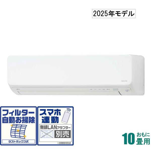 富士通ゼネラル (2025年モデル)(標準工事セットエアコン) ゴク暖nocria(ノクリア) [10畳用] (冷房:8〜12畳/暖房:8〜10畳) AS-DN285S2-W 返品種別A