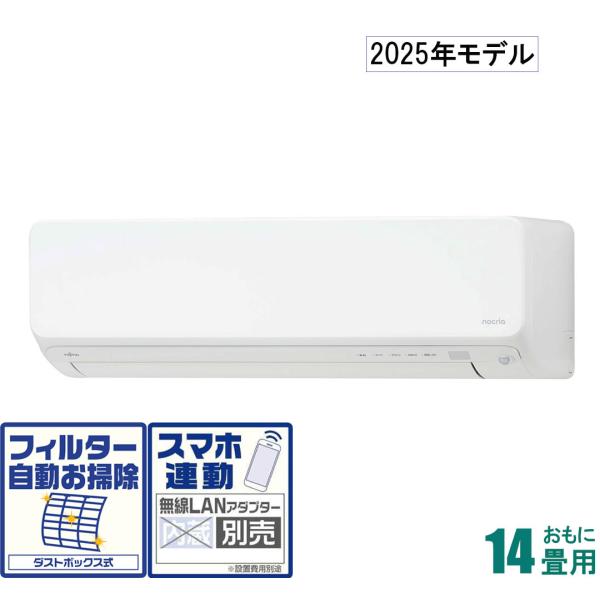富士通ゼネラル (2025年モデル)(標準工事セットエアコン) ゴク暖nocria(ノクリア) [14畳用] (冷房:11〜17畳/暖房:11〜14畳) AS-DN405S2-W 返品種別A