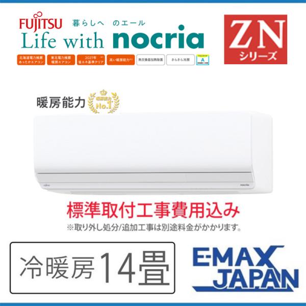 AS-ZN403N2-W-SET 標準取付工事費込 富士通ゼネラル エアコン おもに14畳 ZNシリーズ ゴク暖nocria ルームエアコン 清潔 除湿 壁掛け 2023年 モデル スマホ対応