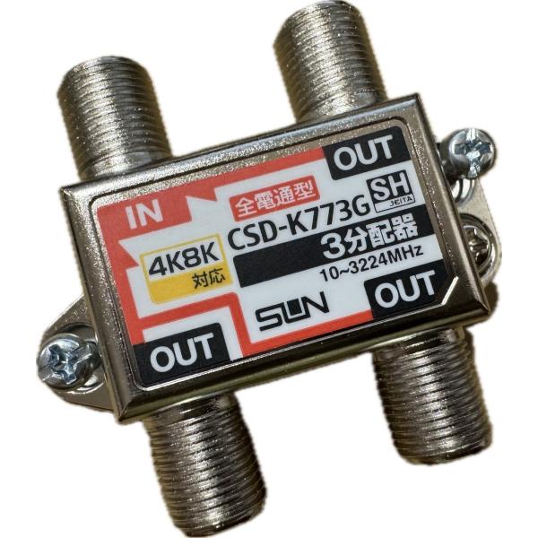 【アウトレット品】サン電子 4K8K対応 3分配器 10〜3224MHz 全端子電流通過型 F-5コネクタ付属 CSD-K773G
