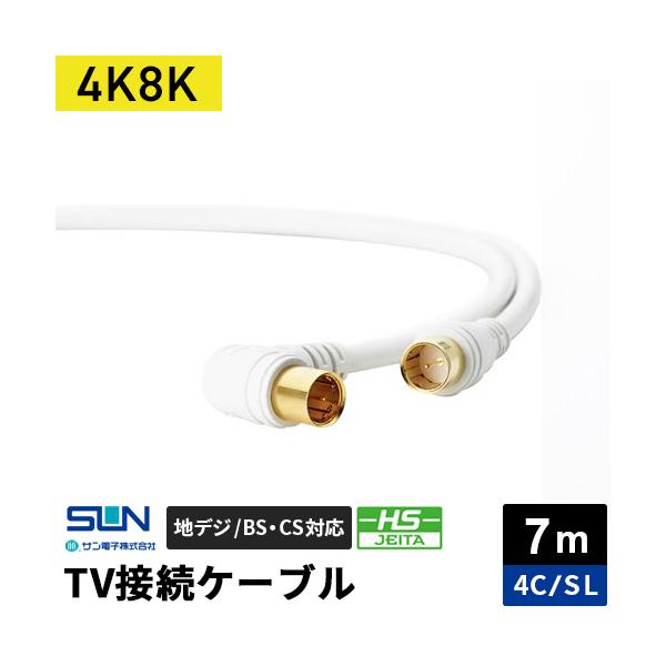 サン電子 4K8K対応TV接続ケーブル 7m 4C ストレートプラグ-L型プラグ 4SL-K70WP