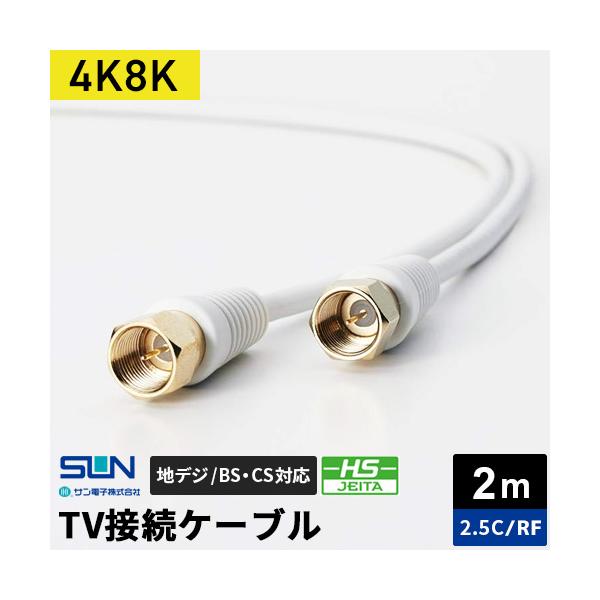 サン電子 4K8K対応TV接続ケーブル 2m 2.5C 両端F形コネクタ 2RF-K20WP