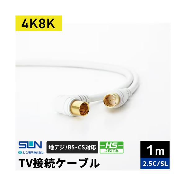 サン電子 4K8K対応TV接続ケーブル 1m 2.5C ストレートプラグ-L型プラグ 2SL-K10WP
