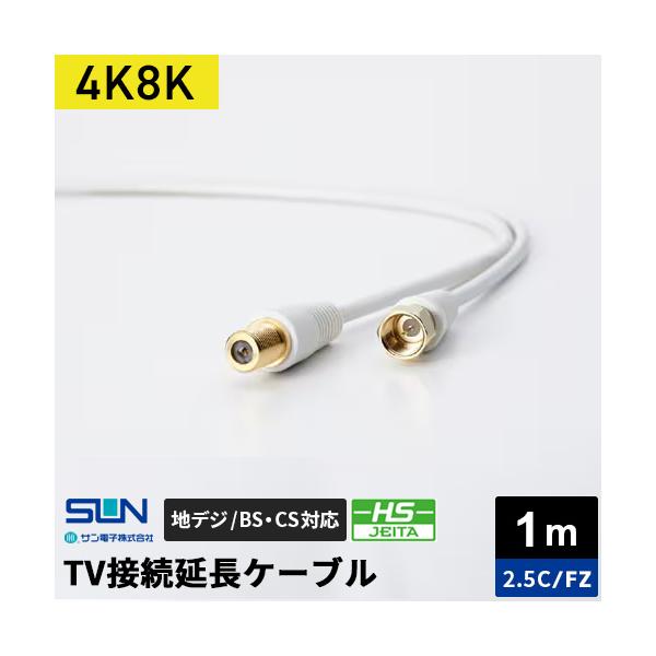 サン電子 4K8K対応TV接続延長ケーブル 1m 2.5C 中継コネクタ-F形コネクタ 2FZ-K10WP