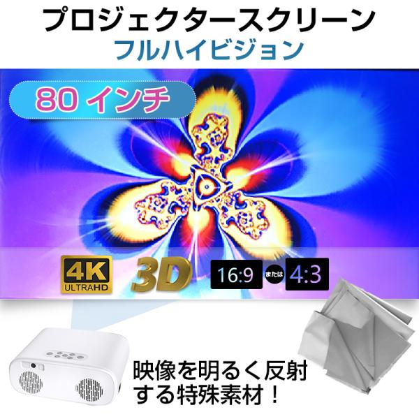 プロジェクタースクリーン 80インチ 16:9 4:3 4K 耐外光 金属繊維 吊り下げ 貼り付け 折りたたみ 持ち運び シワなし 水洗い可 大画面 映画 ドラマ 会議