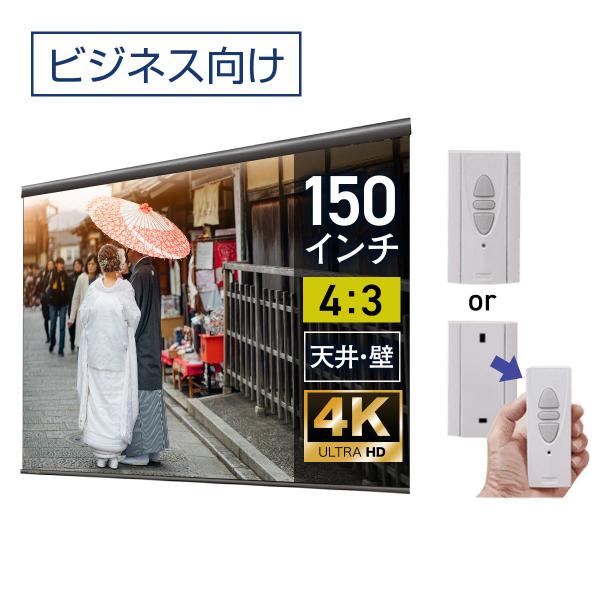 シアターハウス プロジェクタースクリーン 遠距離操作電動スクリーン ケースなし(4:3) 150インチ ロングタイプ マスクフリー 日本製 WRF3049FEH-H2500