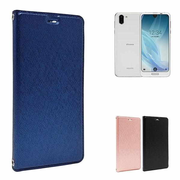 shizukawill AQUOS R2 SH-03K SHV42 手帳型 スリム手帳 ケース カバー SHAQR2SLDEBL