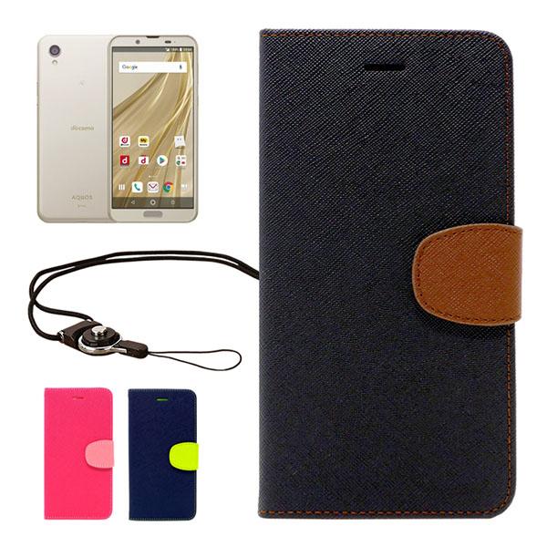 shizukawill AQUOS sense2 SH-01L SHV43 2WAYストラップ付 手帳型 ケース カバー SHAQSE2BK