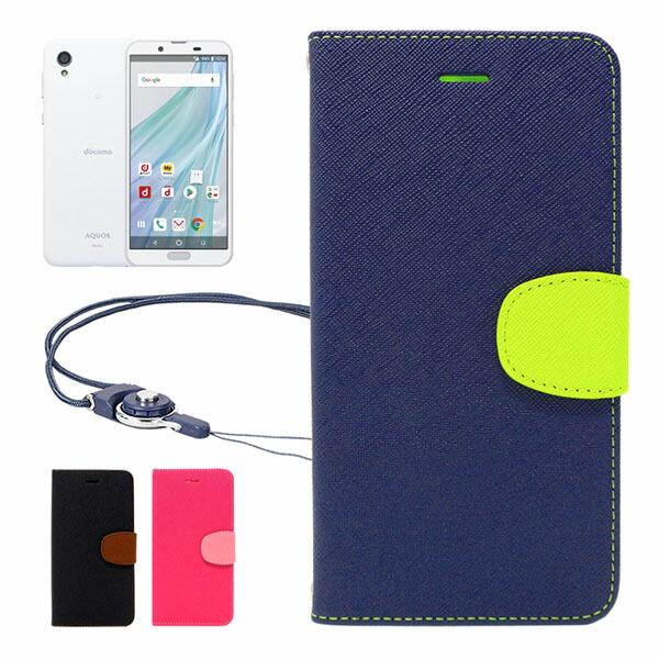 shizukawill AQUOS sense2 SH-01L SHV43 2WAYストラップ付 手帳型 ケース カバー SHAQSE2BL