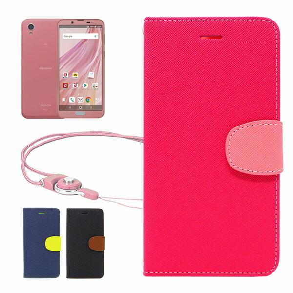 shizukawill AQUOS sense2 SH-01L SHV43 2WAYストラップ付 手帳型 ケース カバー SHAQSE2PI
