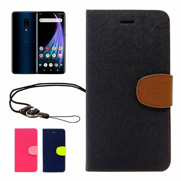 shizukawill AQUOS zero2 SH-01M SHV47 2WAYストラップ付 手帳型 ケース カバー SHAQZ2BK