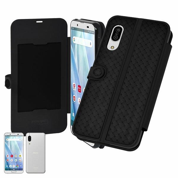 shizukawill AQUOS sense3/3lite/3basic 手帳型 ケース サイメッシュ SHAQSE3MBK