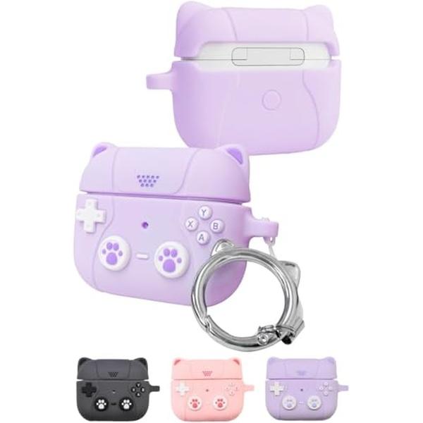 シズカウィル AirPods 3 ケース カバー 猫型タイプ 猫耳 ストラップ付 シリコンケース C01 パープル shizukawill