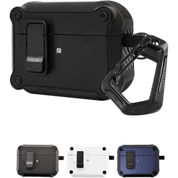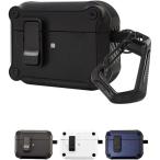 シズカウィル AirPods Pro 2 / 1 ケース カバー カラビナ付 高耐衝撃 ロック機能 C04 / ブラック shizukawill