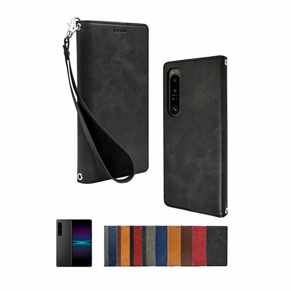 shizukawill Xperia 1 IV SO-51C SOG06 手帳型 ケース カバー 本革調 レザーケース SOX1M4BLACK