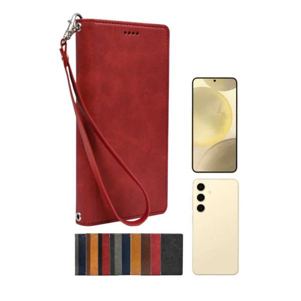 shizukawill Galaxy S24 手帳型 本革調 レザーケース レッド SAGAS24RED