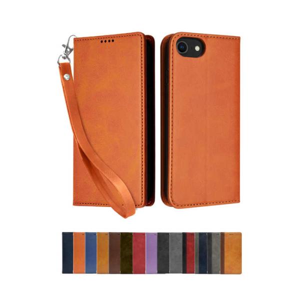 shizukawill iPhone SE 第3世代/第2世代/8/7専用 手帳型 本革調ケース オレンジ APIPSE3ORANGE